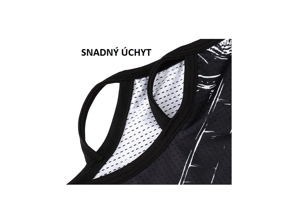 Skvelá šatka, ktorá zakrýva ústa a krk zároveň. Je priedušná a má moderný dizajn. Pri jej výrobe boli použité moderné technológie, ktoré zabezpečujú jej príjemnú vzdušnosť, pružnosť, savosť a výborný odvod potu. Potlač je veľmi realistická. Skvele sedí vďaka šnúrkam, ktoré sa zapínajú za ušami, čo umožňuje robiť so šatkou ostrejšie pohyby. Veľmi rýchlo schne. Poskytuje ochranu pred studeným vetrom, pomáha chrániť pred nárazmi hmyzu. Vhodná na lyžovanie, bicykel, motorku, beh, Halloween atď. Z našich skúseností vieme, že motorkári, cyklisti a lyžiari túto šatku milujú.