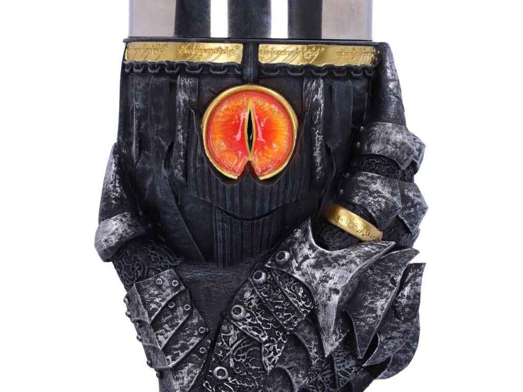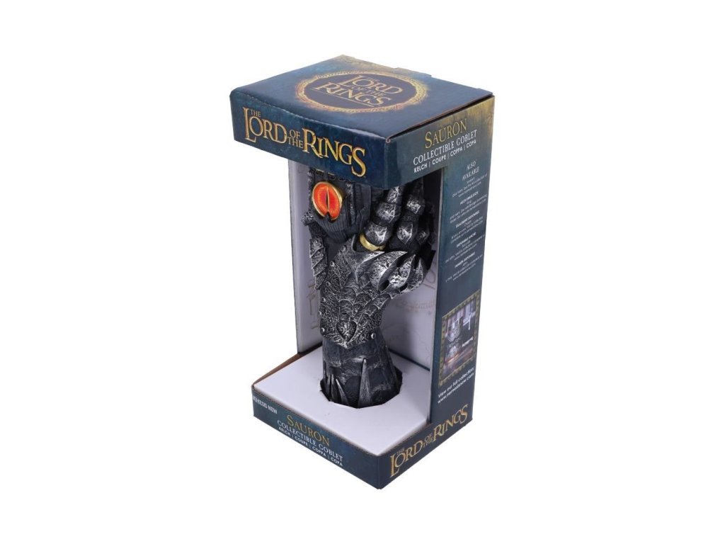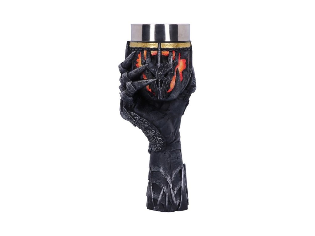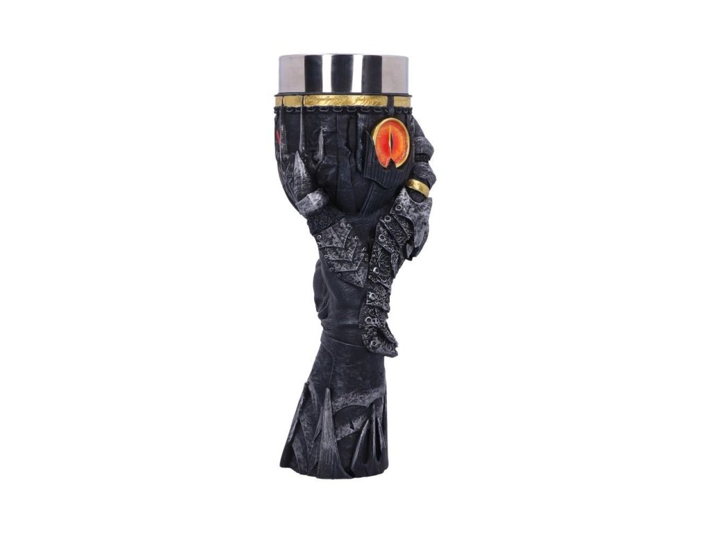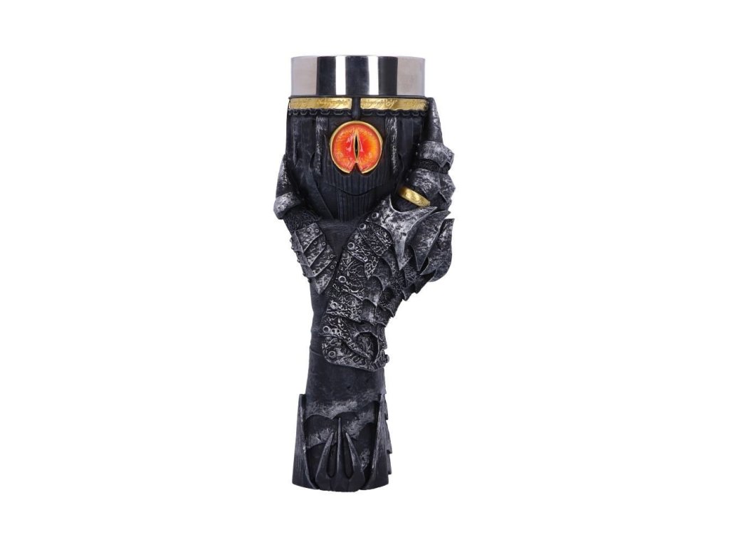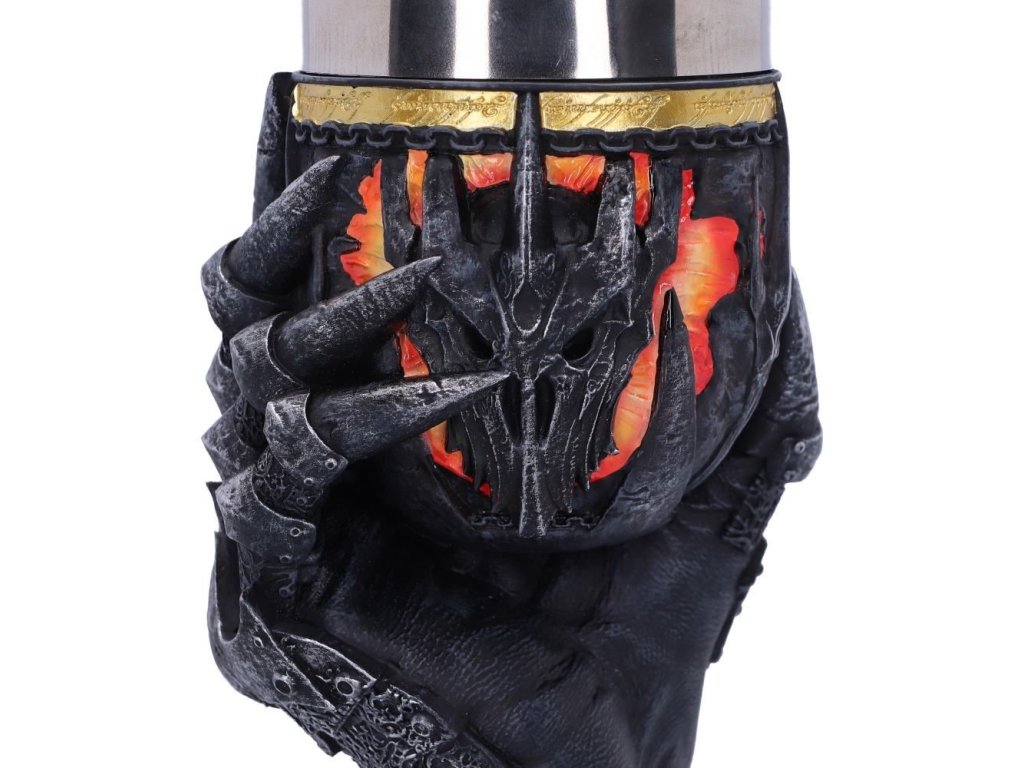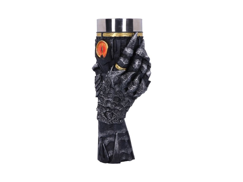 Sauronova rukavica pevne drží pohár s vševidiacim okom a maskou Temného pána zo zeme Mordor, kde sa stretáva šero a súmrak! Nádherný pohár obsahuje množstvo detailov, ako je prsteň moci alebo ucho s ďalším horiacim Sauronovým okom. Vnútro z nehrdzavejúcej ocele je vyberateľné, čo umožňuje jednoduchú údržbu. Pohár sa nesmie umývať v umývačke riadu ani ohrievať v mikrovlnnej rúre!