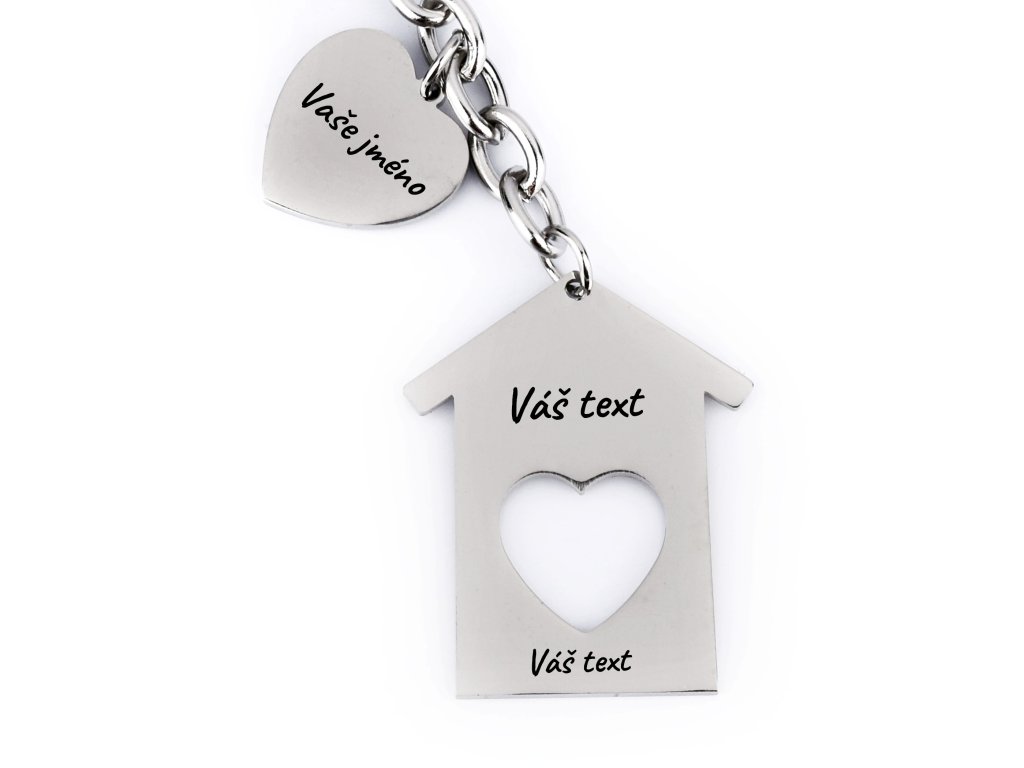 Prívesok - Dom a srdce - Vlastný text - Strieborný