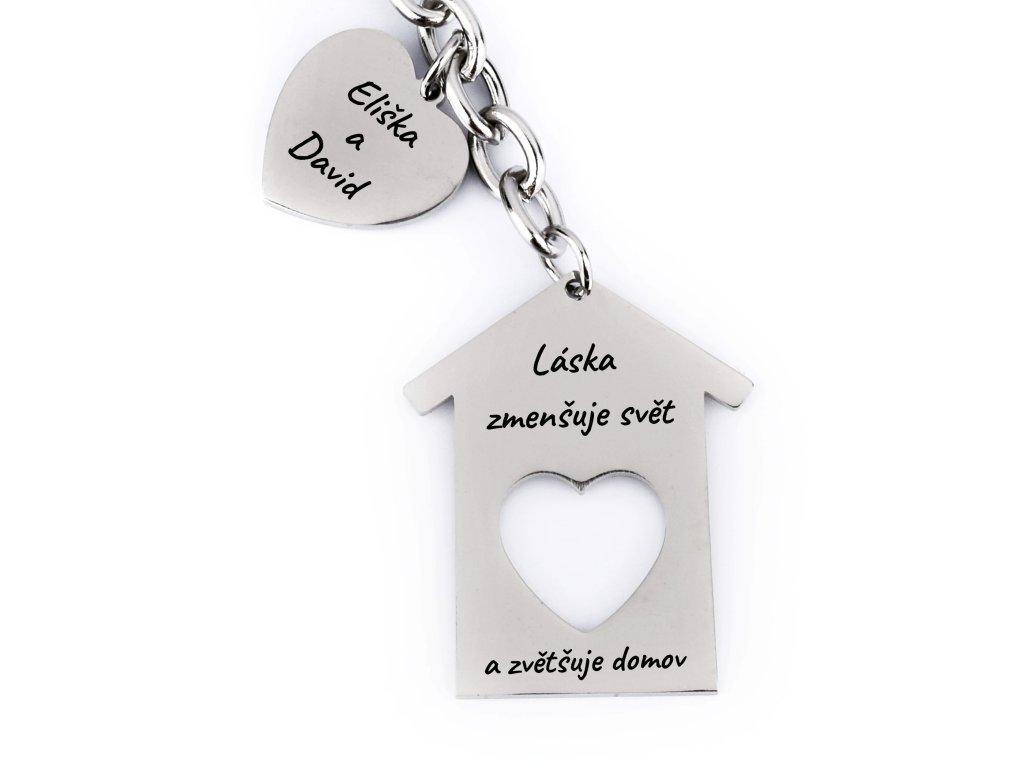 Ideálny darček k narodeninám, Valentínovi, narodeniu dieťaťa, Vianociam, sviatku, pre šťastie, učiteľa, výročiu, svadbe, pre babičku a dedka, na prvého mája alebo len tak pre priateľov. Môžete si vybrať gravírovanie na oboch stranách. Prispôsobte si šperk podľa svojich predstáv. Na jednu stranu môžete dať svoje meno alebo mená svojich detí a na druhú stranu napríklad tajný odkaz, súradnice miesta narodenia, telefónne číslo, iniciály, znak, citát alebo dátum narodenia. V každom prípade je len na vás, čo si vyberiete. Vyberte si kratšie slová. Malé srdiečko je široké približne 1 cm a domček je široký približne 2 cm a vysoký 3,5 cm.